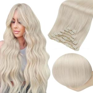 Full Shine Clip in Human Hair Extensions Iced Blonde 20 Inch White Blonde Real Human Hair Extensions Clip ins Remy Human Hair 7pcs/120g
