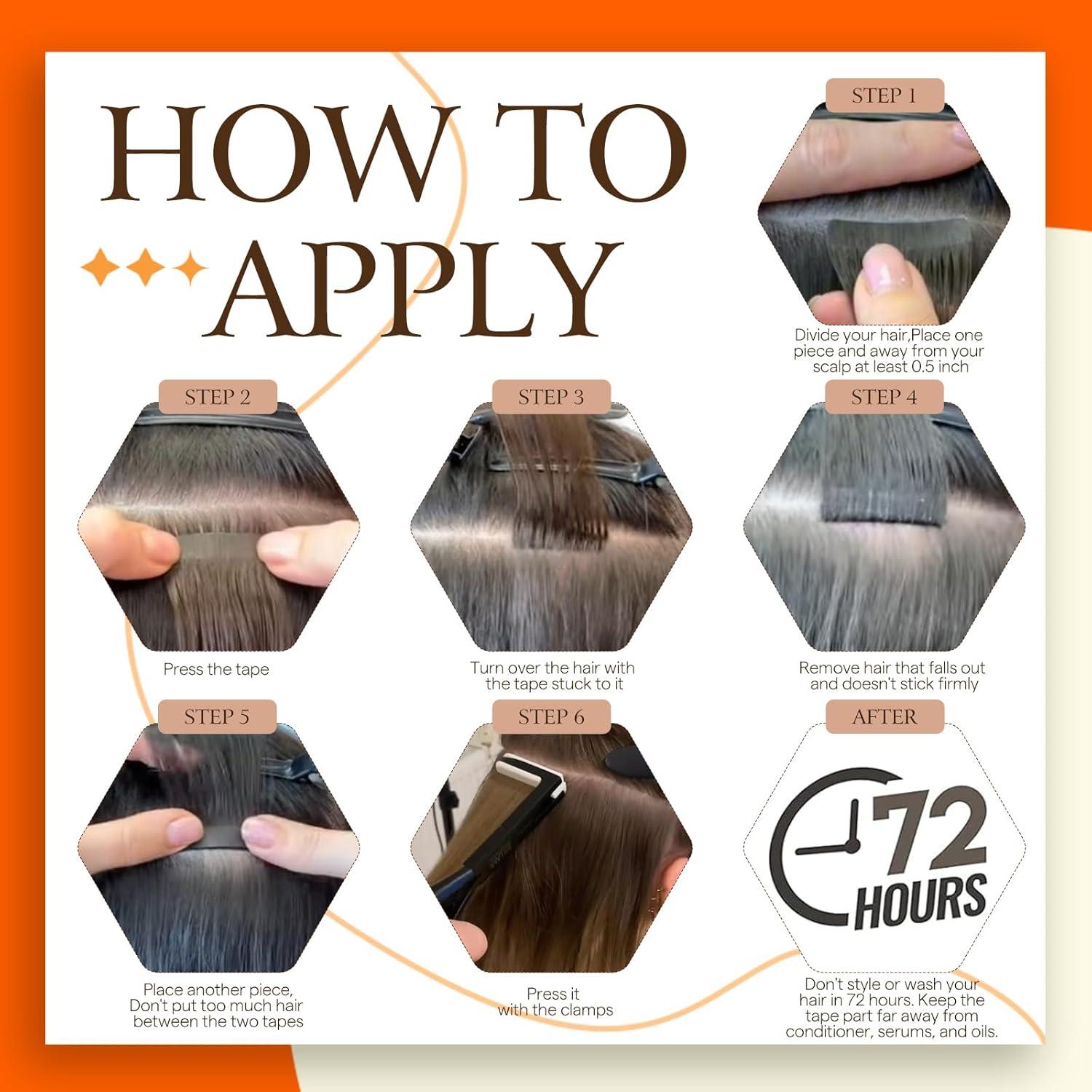 Strong Tape: Tape Hair Extensions Are Double-Sided Tape With Strong Glue,Powerful And Hypoallergenic;They Can Be Re-Taped And Re-Applied,It Is Completely Invisible And Looks Very Natural;Just Like Your Own Hair – Curl, Straighten,Suitable for Any Occasions
